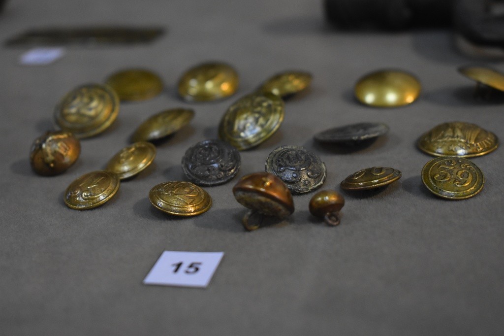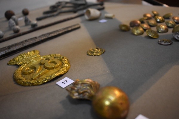На вопрос, какие способы он использовал для сохранения экспонатов, Сергей Тимофеевич отвечает: практически ничего, вот только обработал одно ядро смесью от ржавчины, купленной в автомагазине, и шпоры, пуговицы и киверные знаки – уже специальным лаком.