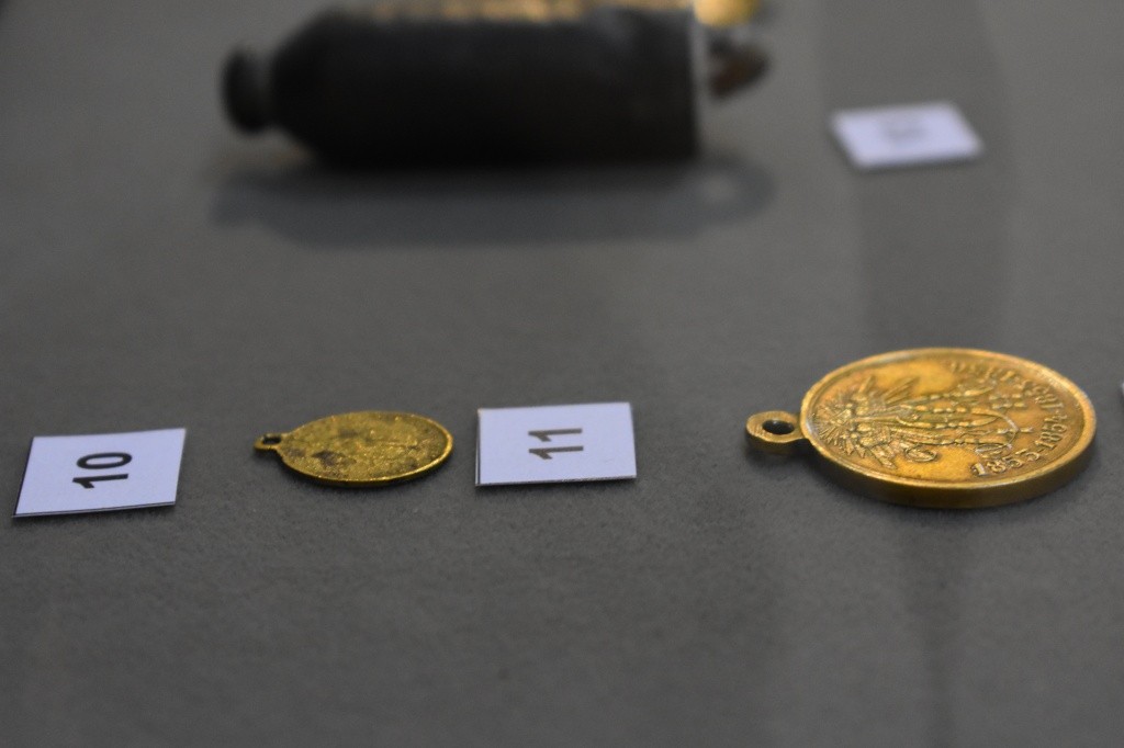 Еще один экспонат − монета Наполеона III − была найдена на месте лагеря, где когда-то стояли французы. Потеря металлического кругляшка датируется примерно 1854 годом.
