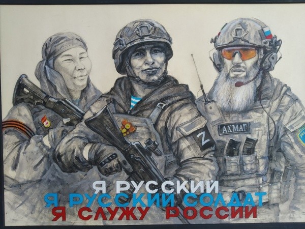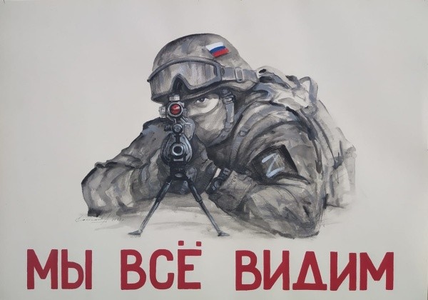 На презентации 22 февраля было людно: вместе со своим преподавателем ОБЖ Алексеем Коростелевым прибыла большая группа кадетов-старшеклассников, активисты движения «Бессмертный полк России», члены местного отделения Общероссийской организации «Боевое братство». Многие офицеры запаса надели награды, полученные за сражения в Чечне, Сирии и на СВО. Это необыкновенные люди, с ясными глазами и прямые в словах. Среди них Ринат Михайлов, Олег Анисимов, Виктор Макаров и другие.Мне особо запомнился боец СВО Максим Аганин с наградами во всю грудь и нашивкой «груз 200 – мы вместе». Вышел сказать и застеснялся. Придет время - расскажет детям, через какой ад он прошел в битве за Бахмут. Эти парни, наверное, могут простить многое, но только не предательство на фронте у себя в тылу за их спиной. Наверное, поэтому всем безоговорочно понравился плакат Санникова «Мы все видим». И правда, мурашки по телу, когда конкретно на тебя в прицел с рисунка смотрит боец СВО...