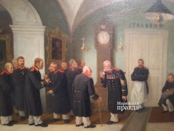 Выставка ошеломляет сразу висящей у входа картиной русского, советского художника Александра Осмеркина «Натюрморт с ходиками». А картина русского живописца Андрея Попова «Демьянова уха» производит на публику впечатление с 1857 года. Большим подарком было увидеть полотно Андрея Рябушкина «Ожидание новобрачных от венца в Новгородской губернии», с которой он дебютировал в 1891 году на передвижной выставке. И далее выдающиеся имена российских и советских художников: Иван Кудрин, Лукиан Попов, Сергей Карев, Иван Михайлов, Михаил Дронов, Зинаида Серебрякова… Конечно, большую часть занял натюрморт, популярность которого, кстати, выросла в советское время. На нашей выставке царствует «Натюрморт со свечой» 1839 года Ивана Хруцкого.Достойно представил из своего собрания гастрономическую экспозицию Республиканский музей изобразительных искусств. Разве не шедевр «Портрет Лизы с собакой» кисти Анатолия Любавина? А сколько замечательного юмора в полотнах «Арбуз» почетного члена Академии художеств Бориса Иванова и в картинах заслуженного художника Марий Эл Игоря Бушуева!