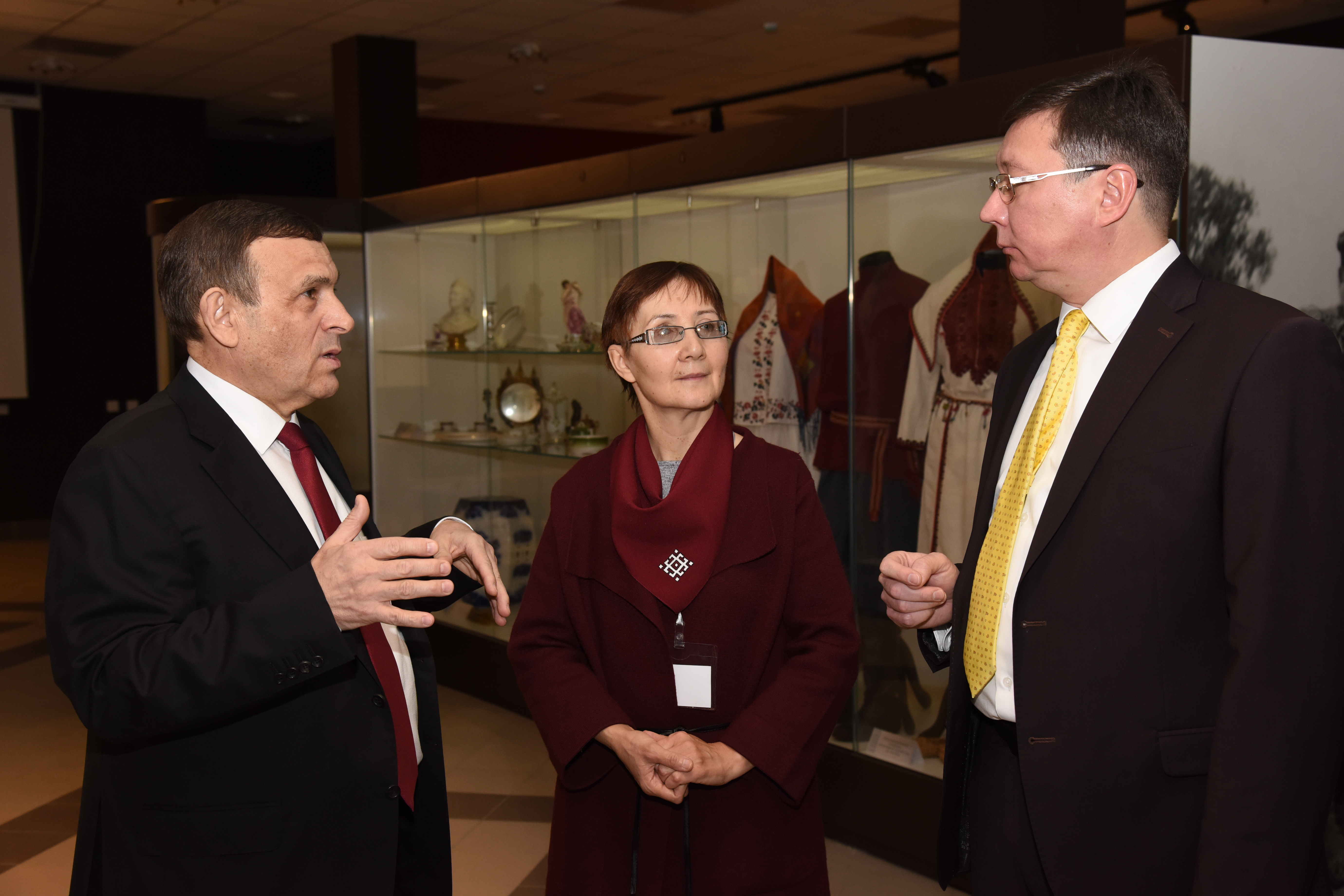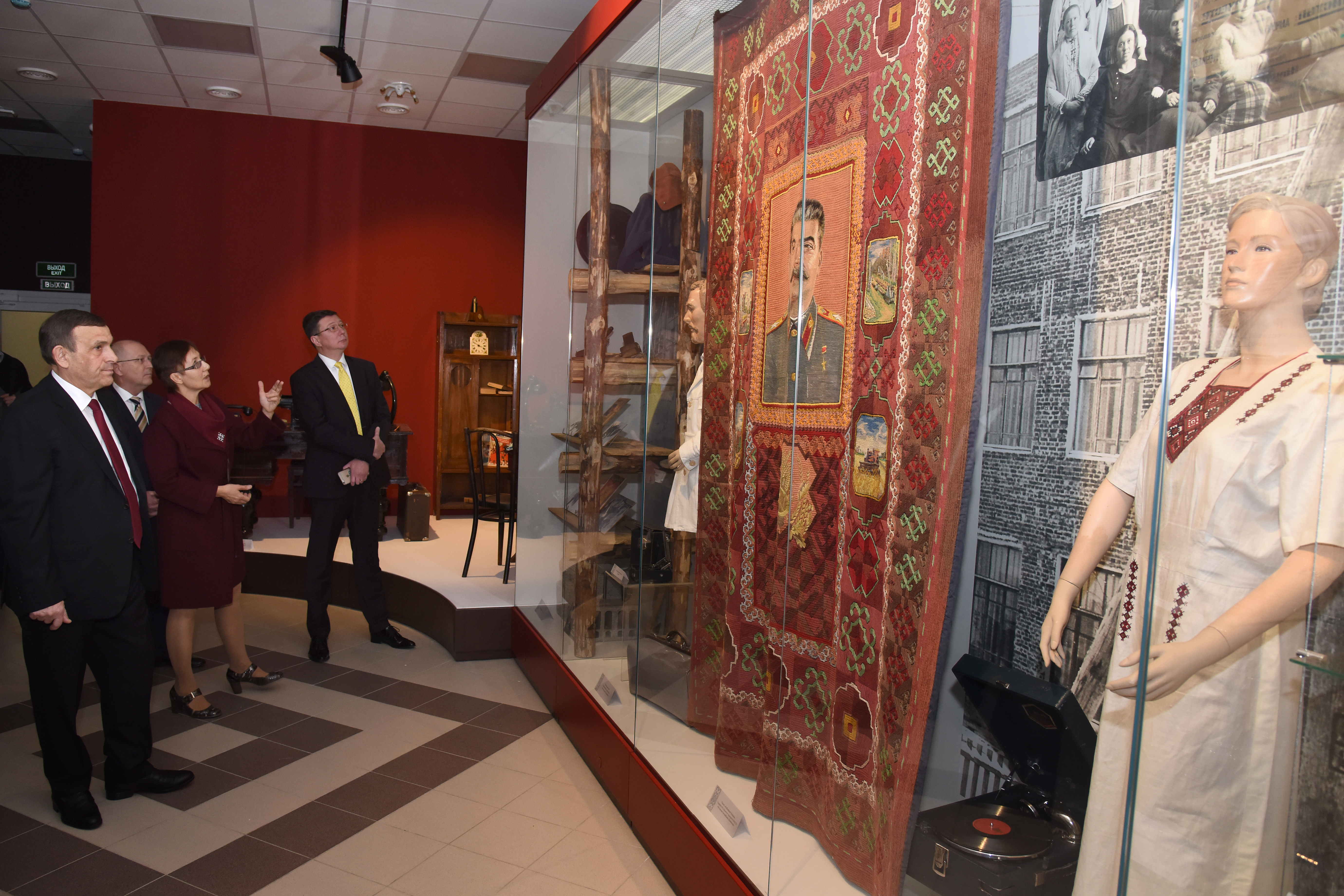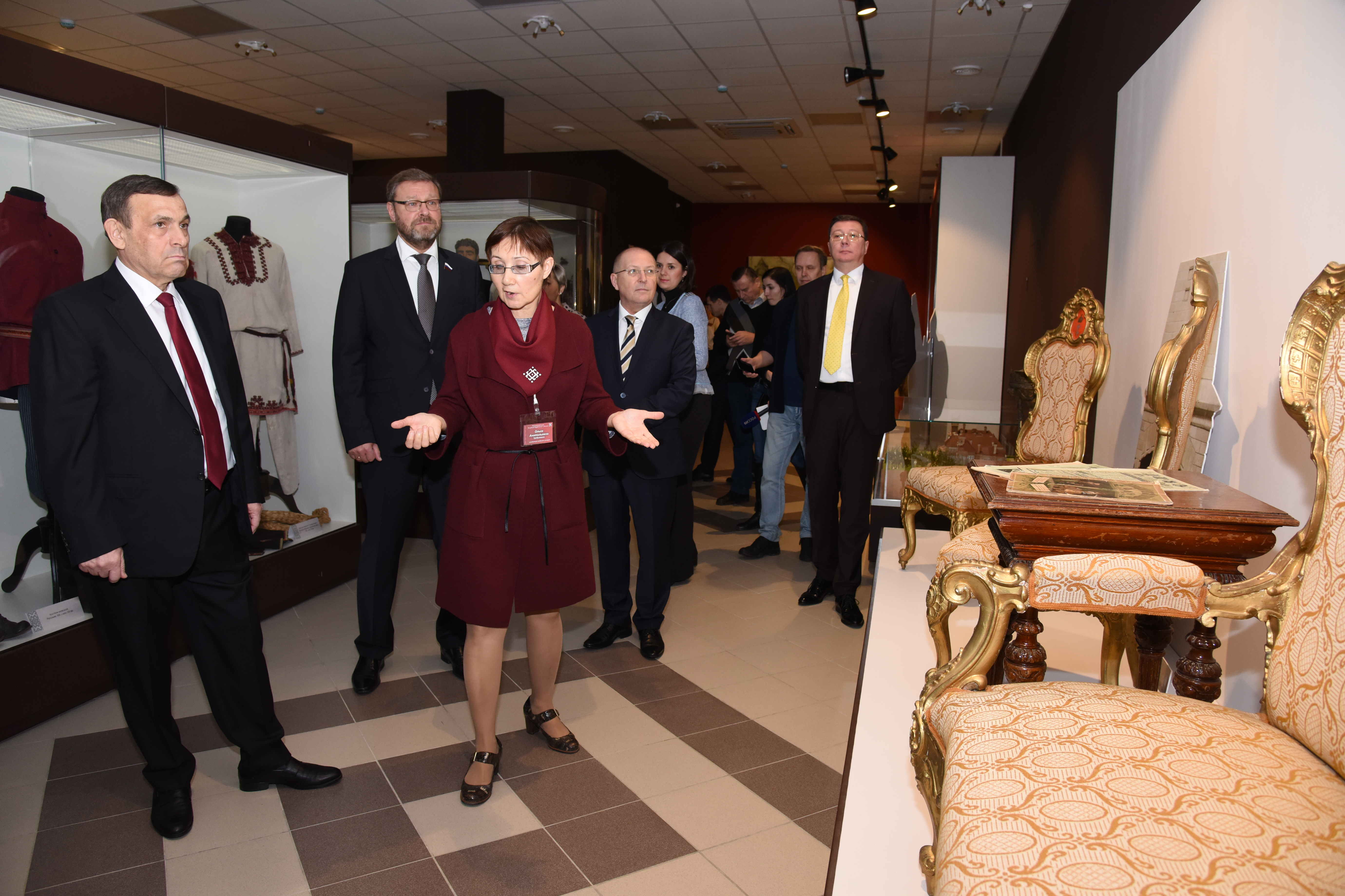 Гости начали осмотр экспозиции с третьего этажа, где их встретила заведующая отделом истории Национального музея Ольга Требушкова. Она провела увлекательную экскурсию, рассказав о назначении и происхождении основных экспонатов. Чего там только не было! Макет замка Шереметева, мебель из его интерьера, предметы национальной одежды, школьная парта, знаменитый пулемет «Максим», имущество репрессированных, образцы продукции марийских предприятий...