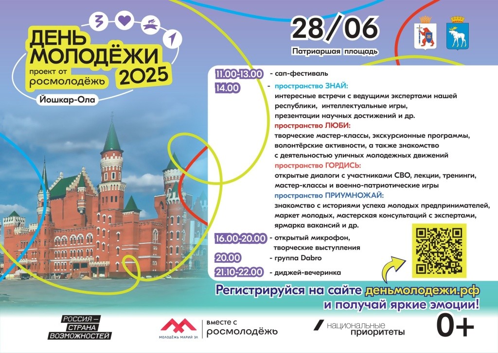 28 июня в Йошкар-Оле на Патриаршей площади пройдет День молодежи. В числе мероприятий – сап-фестиваль, концерт группы Dabro, мастер-классы и много разных активностей.