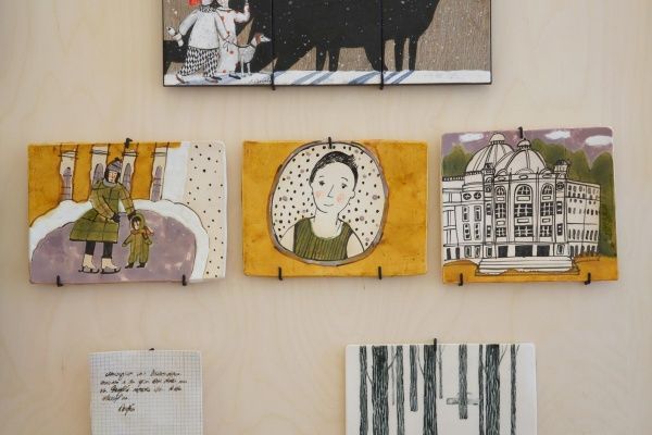 Организаторы пригласили молодую йошкар-олинскую художницу Полину Метелькову участвовать в выставке с ее керамическими пластами - это прямоугольные и квадратные пластины - своеобразные «холсты», на которые красками наносится рисунок, а затем они обжигаются в печи.