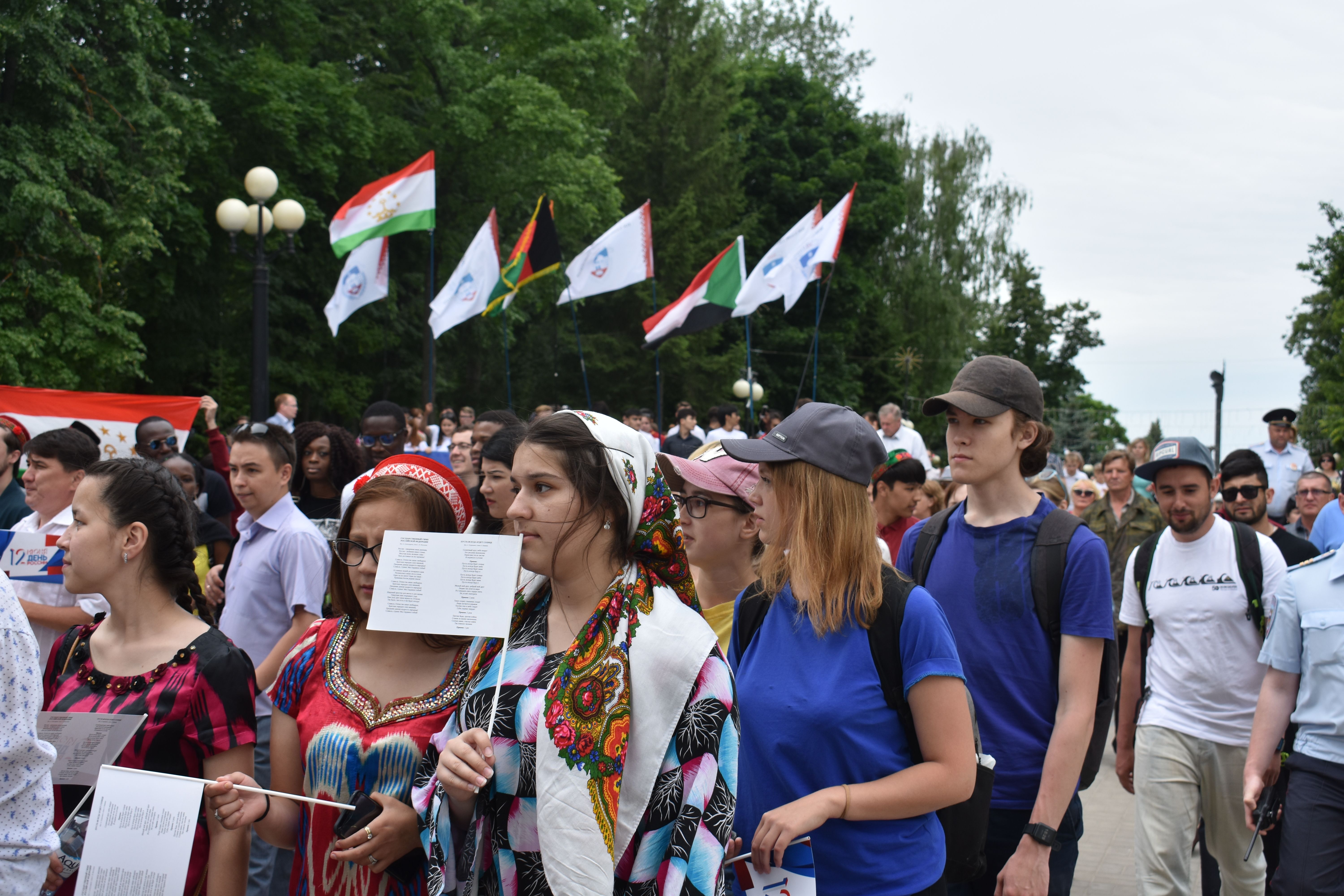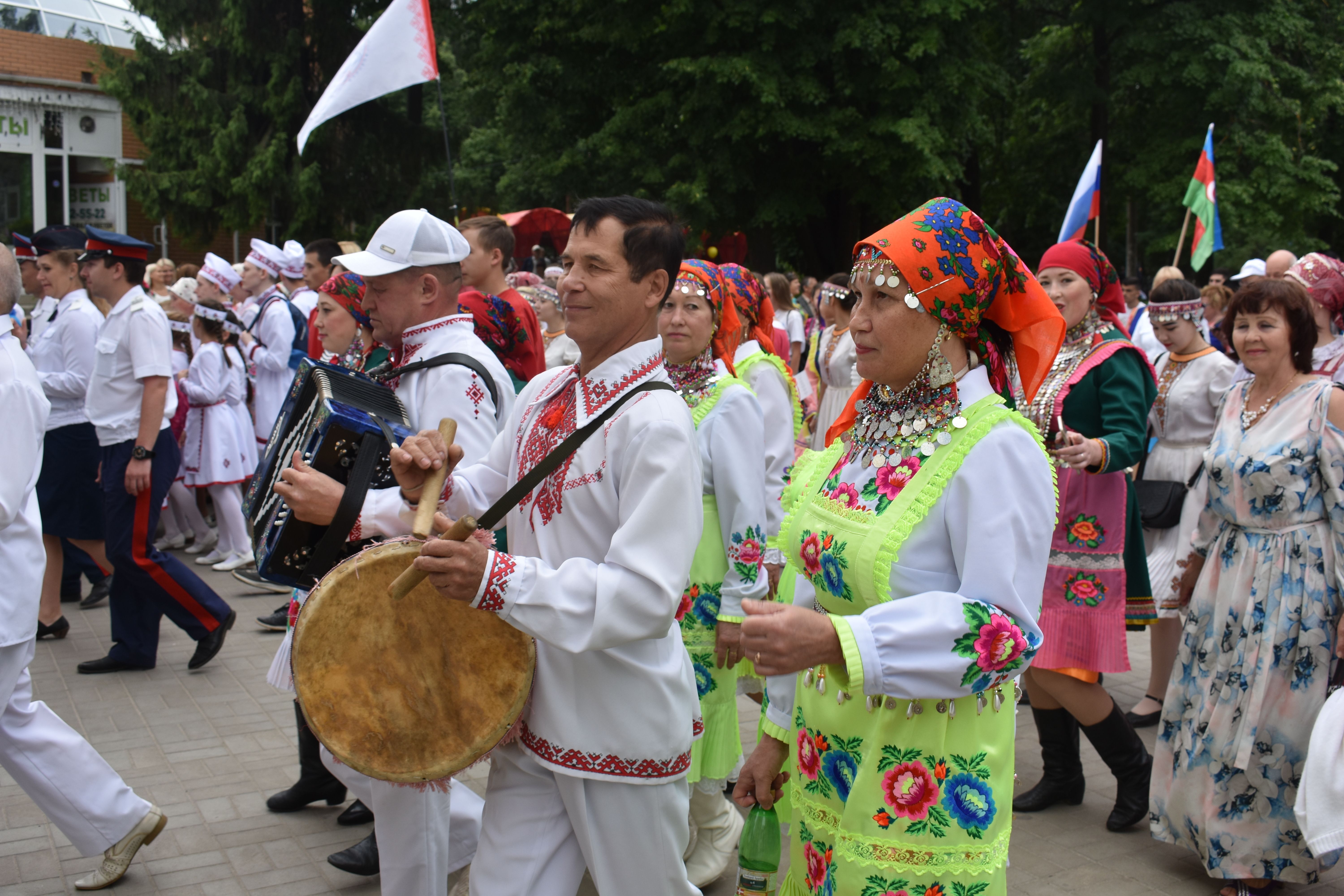 После завершения торжественной части Глава республики, представители Правительства Марий Эл, студенты, жители и гости Йошкар-Олы стали участниками Парада дружбы народов. От Центрального парка культуры и отдыха до Благовещенской башни проследовали колонны.