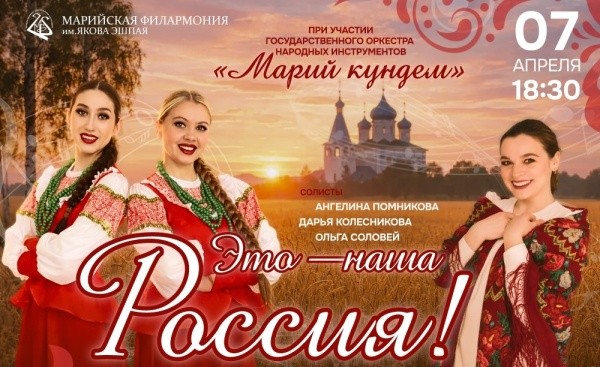 Марийская государственная филармония 7 апреля приглашает всех жителей нашей республики на концерт «Это – наша Россия!» (6+), посвященный величию русской песни.