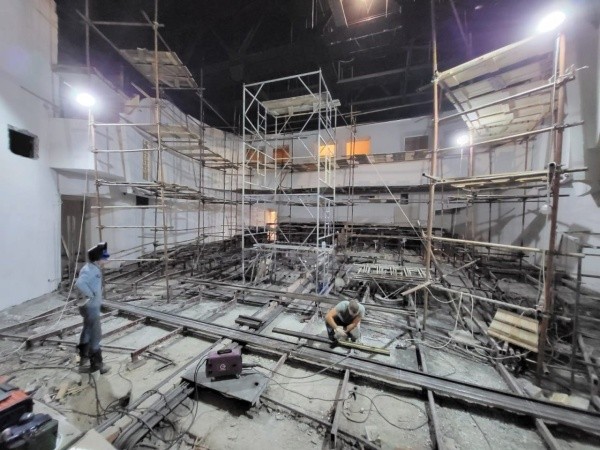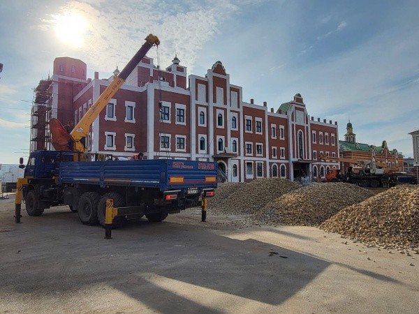 Готовность объекта составила 71,55%: рабочие уже завершили устройство лепного потолка, подключили здание к центральному отоплению и проложили силовой кабель. Также продолжаются и отделочные работы: покраска стен, установка дверей, укладка напольных покрытий. Благоустраивают и прилегающую к театру территорию.