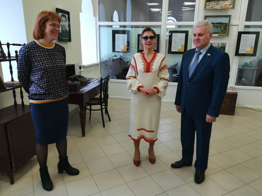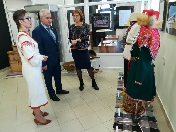 Об артефактах выставки, посвященной жизни Сернурского района, члену Совета Федерации ФС РФ Сергею Мартынову подробнее рассказали заведующая отделом истории Ольга Требушкова и директор Национального музея РМЭ Светлана Зверева. По словам гидов, сейчас в районе проживают 24 тысячи человек. Ежегодно в район приезжают туристы, которые интересуются колоритом народа мари.