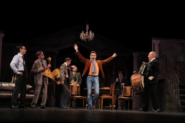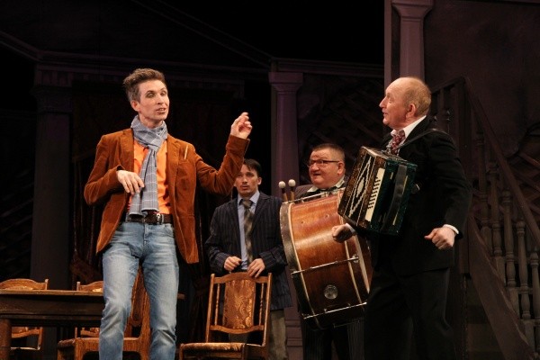 Но был один момент, который все-таки захотелось разъяснить у режиссера. Действие начинается с того, как жители готовятся к празднованию юбилея городка, идет распевка, а потом все хором поют: «Славься, славься ты, Русь моя!» Михаила Глинки. Гимн торжественный, патриотичный. Спектакль также заканчивается им. В общем, в этом кольце славы России – пороки, невежество, алчность, подлый страх. Что это значит? Сарказм или что-то другое?