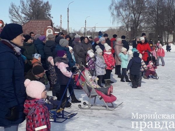 В Сернурском районе Марий Эл сегодня, 10 марта, на главной площади райцентра и во дворе храма прошли масленичные гулянья с угощениями и играми.