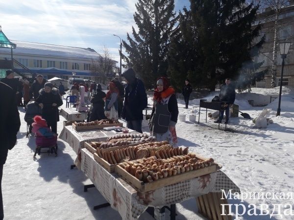 Главная площадь поселка Сернур сегодня, 10 марта, стала центром притяжения для местных жителей и тех, кто приехал сюда из деревень или просто в гости родственникам. Здесь по традиции весело и задорно, с музыкой, танцами, ароматным и сочным шашлыком и свежеиспеченными пирожками, играми и конкурсами встречали весну, провожали зиму.