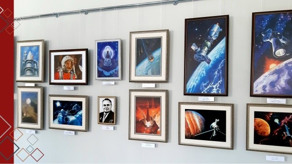 Экспозиция объединила репродукции картин, созданных в соавторстве художником Андреем Соколовым и космонавтом Алексеем Леоновым, сообщает газета «Йошкар-Ола». Этот творческий тандем позволил органично соединить художественную фантазию с безупречным знанием космической техники.
