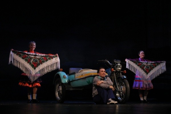Лаконичные и минималистические декорации художника-постановщика Сергея Таныгина добавляют воздух и объем происходящему на сцене, позволяют, на мой взгляд, актерам чувствовать себя максимально свободно, а некоторым - даже не мешают ездить на мотоцикле и велосипеде! Надо отдать должное постановочной группе спектакля и производственным цехам, которые не просто ввели в действо настоящий мотоцикл с коляской, но и заставили его двигаться каким-то немыслимым способом! При этом «железный конь» не был частью реквизита, он стал одним из главных героев повествования, молчаливым, но тем не менее активным участником диалогов между героями.
