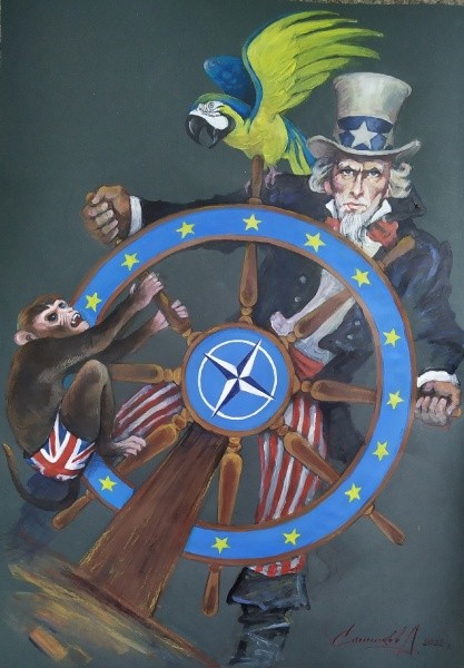 Конечно, с начала СВО интернет запестрел российской политической карикатурой. В подавляющем большинстве примитивной, шаблонной. Ничего оригинального нет в том, чтобы «приклеить» голову политика к рисунку и подписать пару фраз. Поэтому приятным сюрпризом стала политическая карикатура нашего художника Андрея Санникова «Спасите Ангелов», размещенная на сайте знаменитого телеведущего Владимира Соловьева. На ней злобный пес с атрибутами Украины и НАТО ломает забор, чтоб растерзать беззащитных детей...Конечно, захотелось поближе познакомиться с творчеством автора. Оказалось, что в прошлом году он уже написал серию подобных работ и продолжает совершенствоваться.