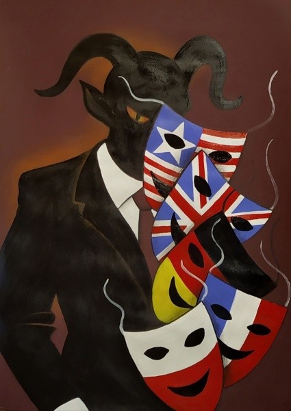 В бытность СССР жанр социальной и политической карикатуры был чрезвычайно востребован и любим, практически все газеты использовали его на своих страницах. В Марий Эл, конечно, в первую очередь мы вспоминаем народного художника РФ и республики Зосима Лаврентьева, карикатуры которого публиковались в сатирических журналах во многих регионах страны и были отмечены на всесоюзных выставках.В 90-е с развалом советской империи искусство политического плаката и карикатуры в России сошло практически на нет. Мы вдруг посчитали, что вчерашние враги теперь наши друзья и партнеры. Но с началом специальной военной операции на Украине «наши партнеры» маски окончательно сбросили. Именно так – «Маски сброшены» (бумага, акрил) – называется политическая карикатура Андрея Санникова, которую он вывесил весной в Йошкар-Олинском художественном училище. По инициативе директора училища Бориса Маклашина тогда прошла выставка плакатов, посвященных СВО и Дню Победы. На карикатуре мы видим Сатану, который сбрасывает одну за другой маски, раскрашенные в цвета флагов недружественных нам стран.