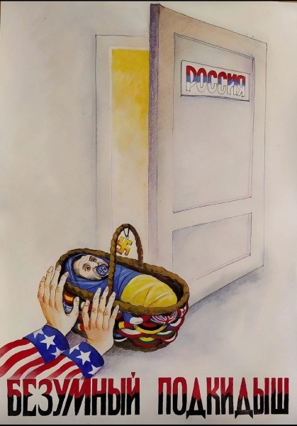 Безусловно, у каждой страны есть свой стереотипный образ, который художники обыгрывают по-разному. У западных карикатуристов Россия представлялась всегда в образе злобного медведя, мужика в ватнике с балалайкой и другими атрибутами. Сегодня образ России – это наш Президент Владимир Путин, «виновник всех бед и проблем Запада». Не обошелся без этого образа России и Санников.Картина такая: Зеленский подкидывает в печь дрова, похожие на солдат украинской армии, дядюшка Сэм швыряет в огонь доллары. А на печи Путин спокойно играет на скрипке, выдавая звук «Z-z-z». Чаще всего политическая карикатура бывает злобной, но у Санникова в ней много юмора, что говорит о его человеческой мудрости. Лично мне очень понравилась карикатура «Безумный подкидыш» – под дверь России дядюшка Сэм подбрасывает в корзине младенца Зеленского с фашистской свастикой вместо детской игрушки.