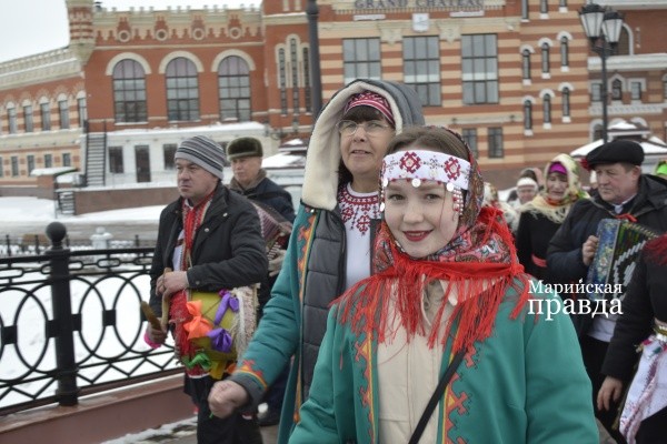 Под звуки музыкальных инструментов и народные мелодии участники масленичного шествия двинулись с Патриаршей площади до Царевококшайского кремля. Здесь их встречали Оза (Хозяин), Оза вате (Хозяйка), Ӱярня курык кугыза (Хозяин масленичной горы) и Ӱярня кува (Хозяйка народных игр).