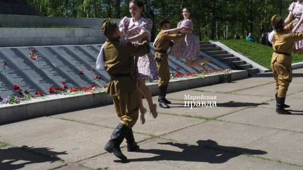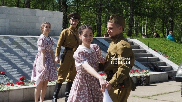 Александр Канашин выступил в составе фронтовой концертной бригады, сменив современную солдатскую форму на времена Великой Отечественной войны. Вообще, подобные постановки пользуются большой популярностью у волжан: артисты исполняют песни военных лет, разыгрывают эпизоды, танцуют вальс и приглашают жителей присоединиться.