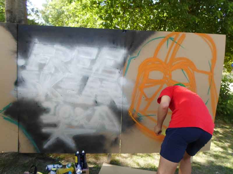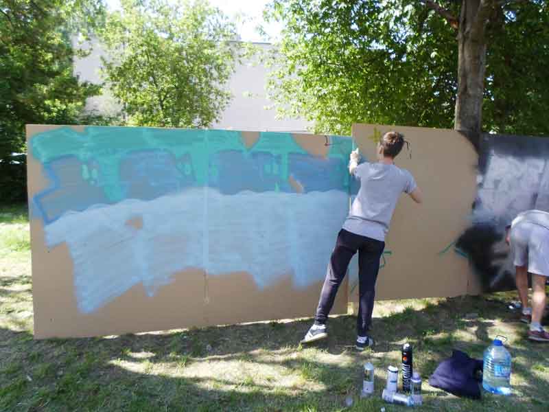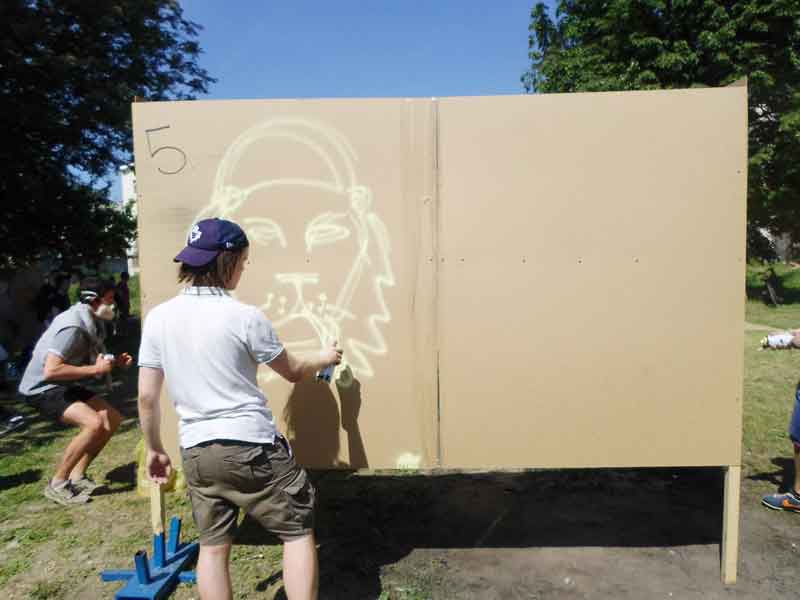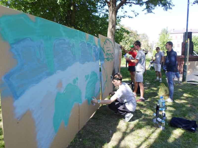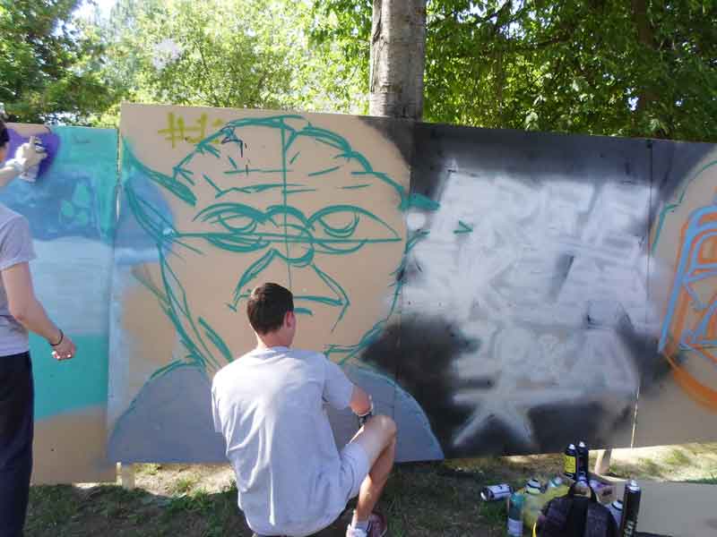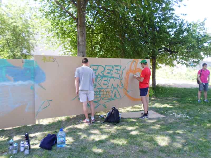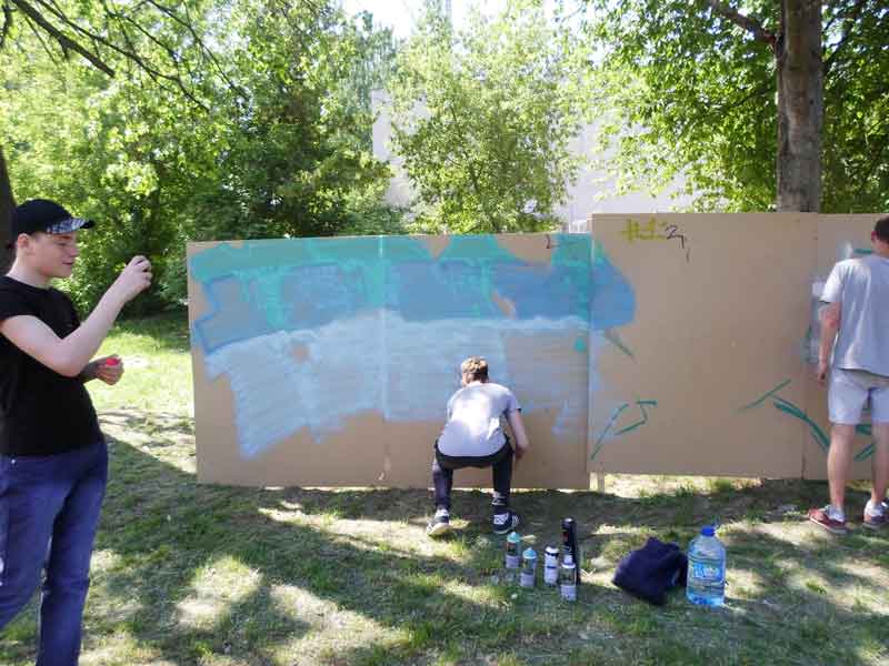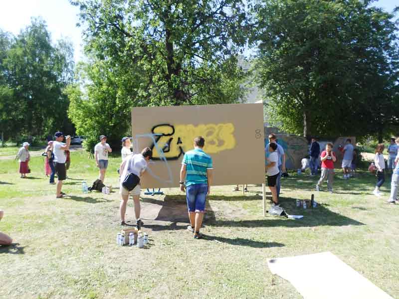 В минувшую субботу в Парке культуры около открытой эстрады прошел фестиваль граффити. Несколько команд молодых людей на глазах у, правда, немногочисленных зрителей, создавали собственные супер-современные изображения на кусках обычного картона.