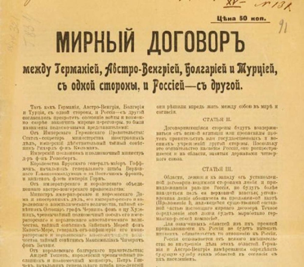 Что в нем? Перемирие на всех фронтах бывшей Российской империи, мирная конференция между всеми фактическими правительствами, сохранение их контроля за обладаемыми территориями (до мирного решения народами вопроса о власти), разоружение, всеобщая амнистия, репатриация военнопленных, снятие экономической блокады, прекращение иностранной интервенции, открытие границ для въезда - выезда, беспрепятственные коммуникации, признание долгов Российской империи.