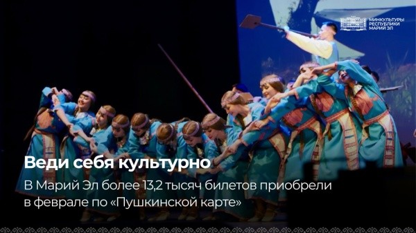 В бюджетные учреждения культуры Марий Эл по программе «Пушкинская карта» в феврале приобрели свыше 13,2 тысяч билетов.