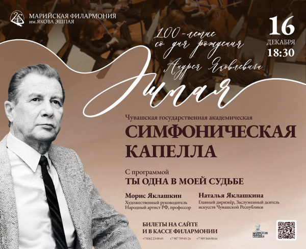 В Марийской государственной филармонии им. Я. Эшпая 16 декабря выступит Чувашская государственная академическая симфоническая капелла с концертной программой «Ты одна в моей судьбе» (6+).