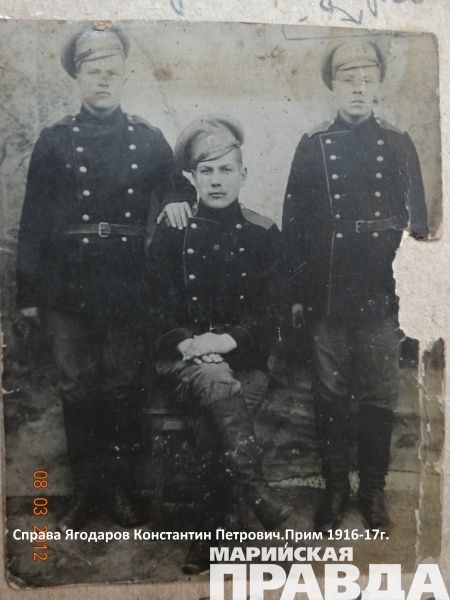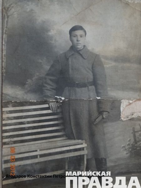 Константин Ягодаров родился 25 сентября 1898-ого года в деревне Мари-Купта в семье крепкого крестьянина Петра Михайловича и Сени. Хозяйство у семьи было хорошее - большой пятистенный дом, несколько коров и лошадей и, что тогда было настоящей диковинкой, механический сельхозинвентарь. В семье было пятеро детей.