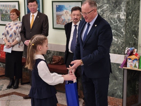 В благотворительной инициативе также приняли участие заместители министра культуры, печати и по делам национальностей. Детей с наступающим Новым годом также поздравили представители государственных учреждений культуры, системы дополнительного образования и СМИ.