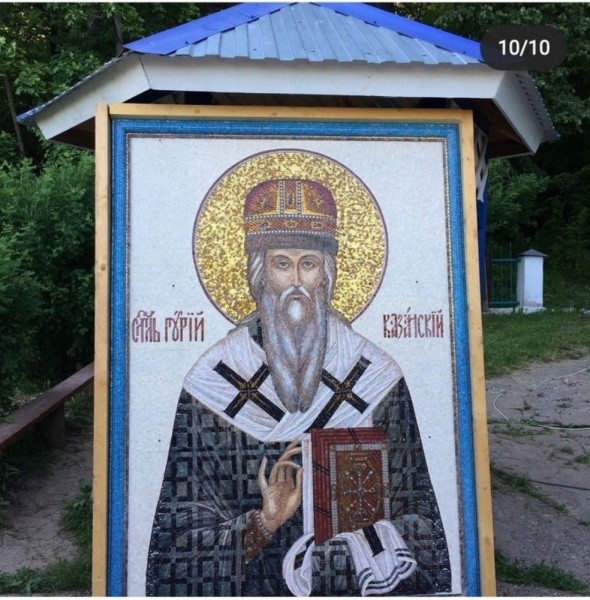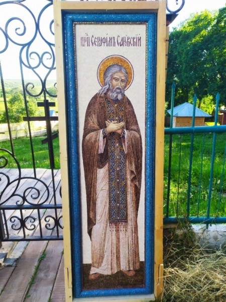 Год назад в той же художественной мастерской были изготовлены еще три мозаичные иконы для храма в Петьялах: святителя Гурия архиепископа Казанского, святого праведного Иоанна Кронштадтского и святого преподобного Серафима Саровского, в честь которого освящен источник вблизи храма.