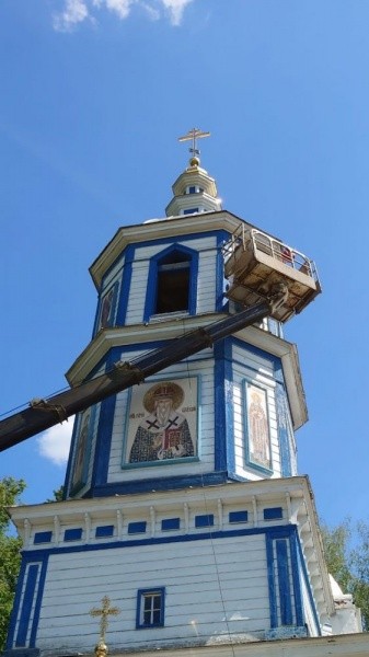 Как рассказали в пресс-службе Йошкар-Олинской и Марийской епархии, иконы архангела Михаила и архангела Гавриила изготовлены из натурального камня и смальты. После того, как епископ Волжский и Сернурский Феофан совершил чин освящения икон, их установили на верхний ярус фасада колокольни.