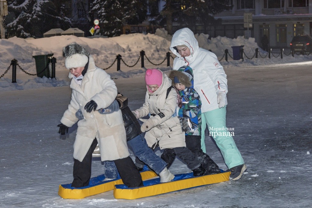 Вечером на площади им. В.И. Ленина жителей и гостей марийской столицы ждали показательные выступления фигуристов на катке. Праздничная программа, организованная при поддержке партии «Единая Россия», включала интерактивные игры от Ассамблеи народов России, выступления артистов, фотосессии с ростовыми куклами и народные забавы.