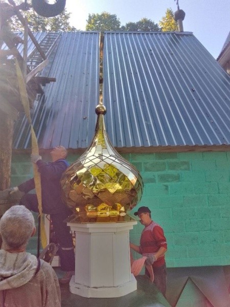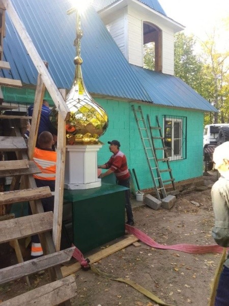 В поселке Солнечный установили купол с крестом на храм в честь иконы Пресвятой Богородицы «Достойно есть».