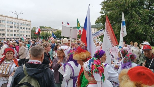 На площади им. В.И. Ленина проходит концертная программа, после которой будет дан старт праздничному шествию «Пеледыш пайрем». Его участниками станут сотни горожан и гостей Йошкар-Олы.