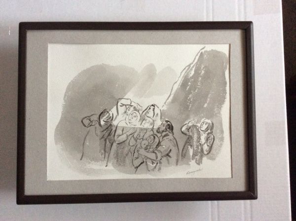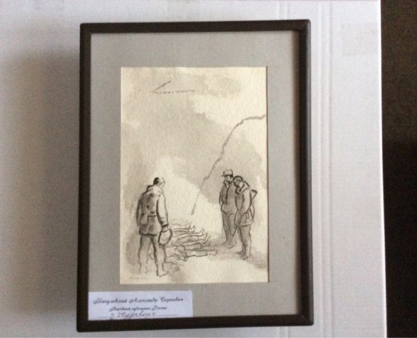 - Уже одно только словосочетание черная акварель войны приобретает зловещий смысл. Сам материал подсказал мне, каких людей изображать, в каких ситуациях, - рассказывает Александр Сергеевич. – Черная акварель как раз позволяет передавать тонкие эмоции сложных взаимоотношений между людьми, сложные ситуации.