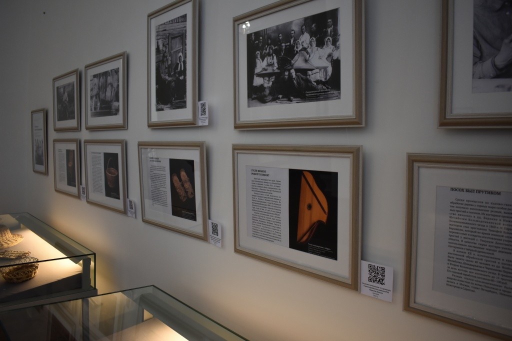Экспозиция, представленная вниманию зрителей, разделена на 4 части. Первая − фотовыставка, состоящая из более 20 снимков, рассказывающих о жизни района и ремеслах, прославивших его. А еще она представлена виртуальными сюрпризами, доступными посетителям через мобильный телефон: чтобы увидеть, понадобится отсканировать куар-код.