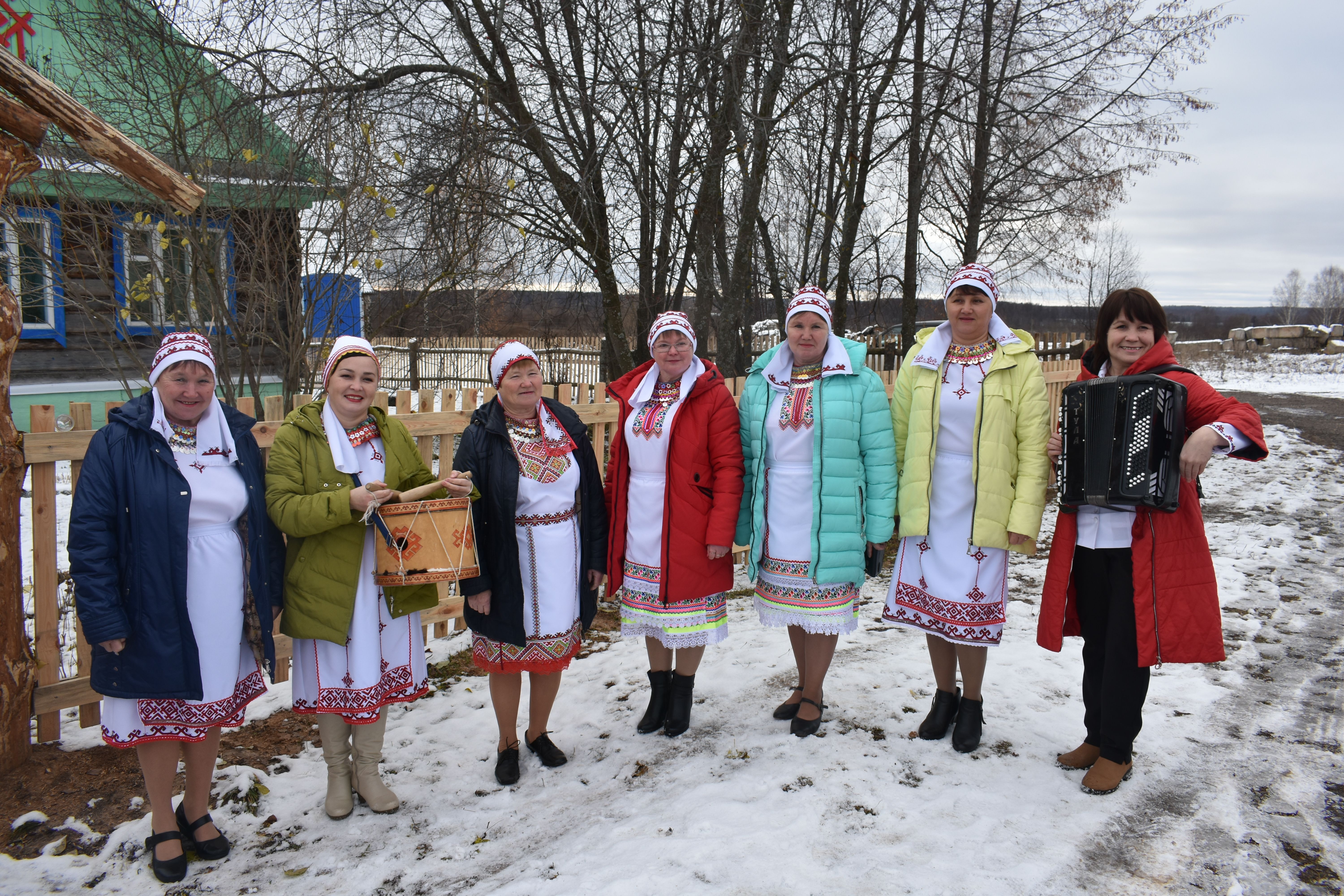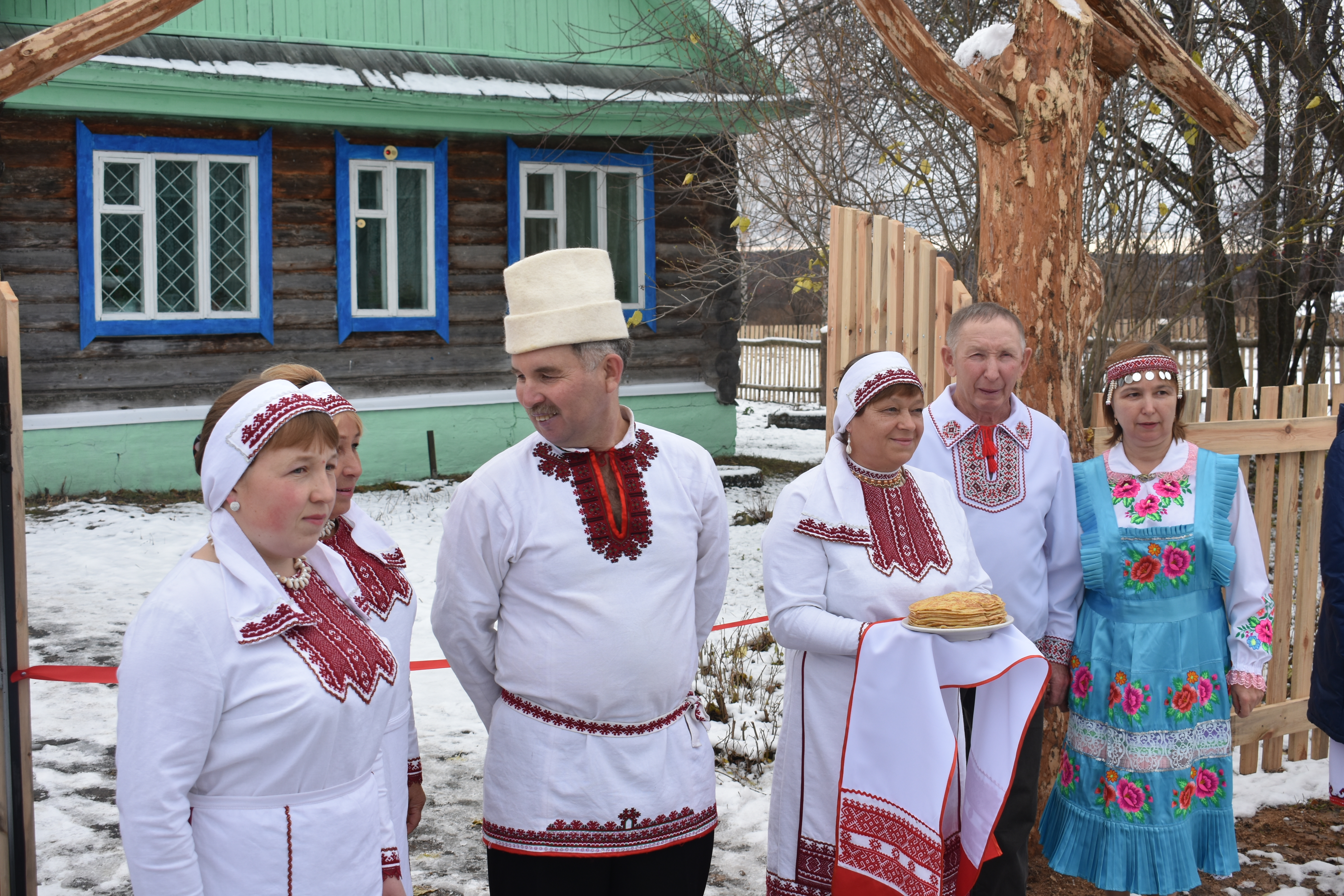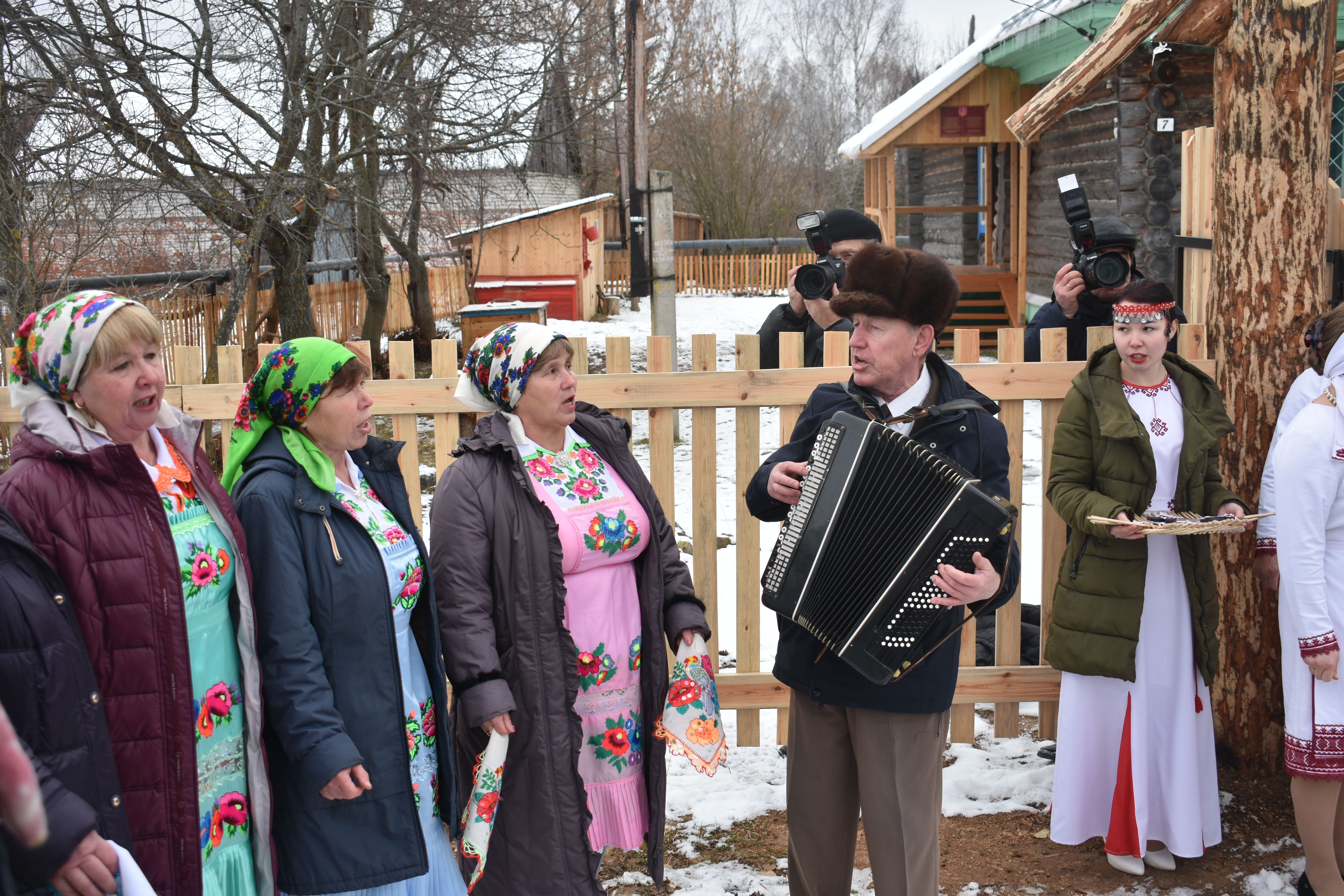Осмотрев один музей, гости направились во второй. У ворот их ожидала целая "делегация" из артистов, исполнивших народные марийские песни под аккомпанемент гармонистов. Кроме того, всех угостили национальными марийскими блинами.