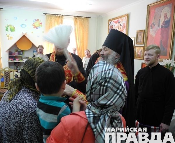 - Христос воскресе! – вдруг звонко сказал один из детей, когда увидел вошедшего в зал архиепископа Йошкар-Олинского и Марийского Иоанна. Владыка тут же с улыбкой отозвался: «Воистину воскресе!». И тут же заулыбались все гости. В таком приподнятом настроением началось освящение нового детского реабилитационного центра.