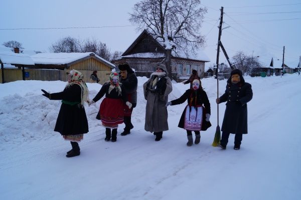 - Участников праздника с большим почтением встретили жители деревни в своих домах, - отмечают организаторы из Республиканского центра марийской культуры. - Марийцы к этому обрядовому празднику, особенно к первому дню, готовились основательно: топили баню, надевали чистую одежду, пекли блины, пироги. Считалось, чем богаче праздничный стол, тем благополучнее станет жизнь в этом году, ожидаются лучшие перемены в семье. Также благополучие семьи в будущем оценивалось подношением даров. В дни рождества по домам ходили ряженые - Васли кугыза (дед Василий) и Васли кува (баба, жена Василия), другие персонажи, одетые в лохмотья, солдатские шинели, у каждого на лице была маска из бересты, бумаги или других подручных материалов. Они поздравляли хозяев с праздником, принимали подарки. Хозяйки показывали им свои рукоделия, хозяева – хозяйственную и другую утварь, предметы, изготовленные ими своими руками. Таким работящим хозяевам Васлий кугыза и Васлий кува не жалели хвалебных слов, но при этом в тех семьях, где работа в ушедшем году не спорилась, хозяева чувствовали себя неловко.