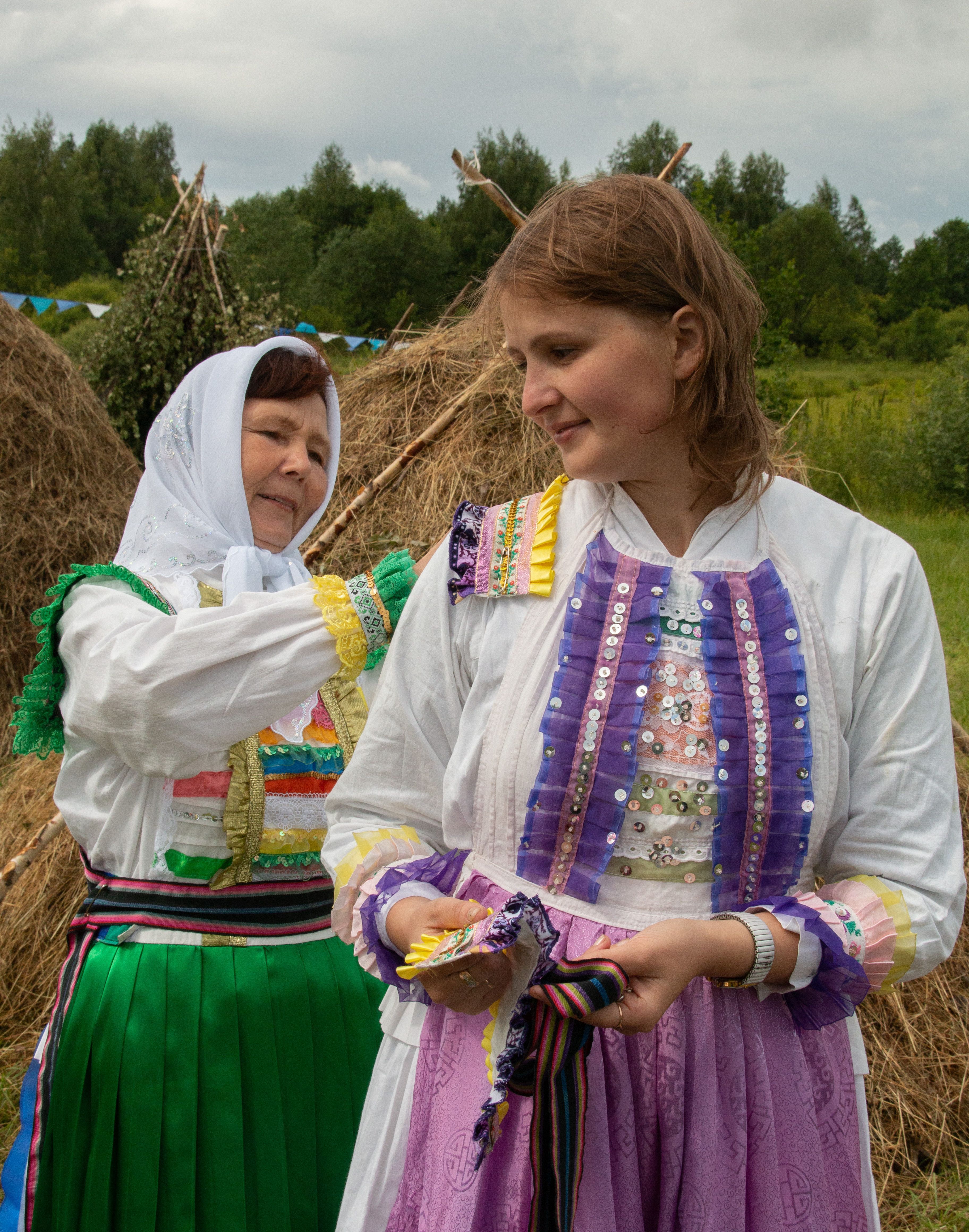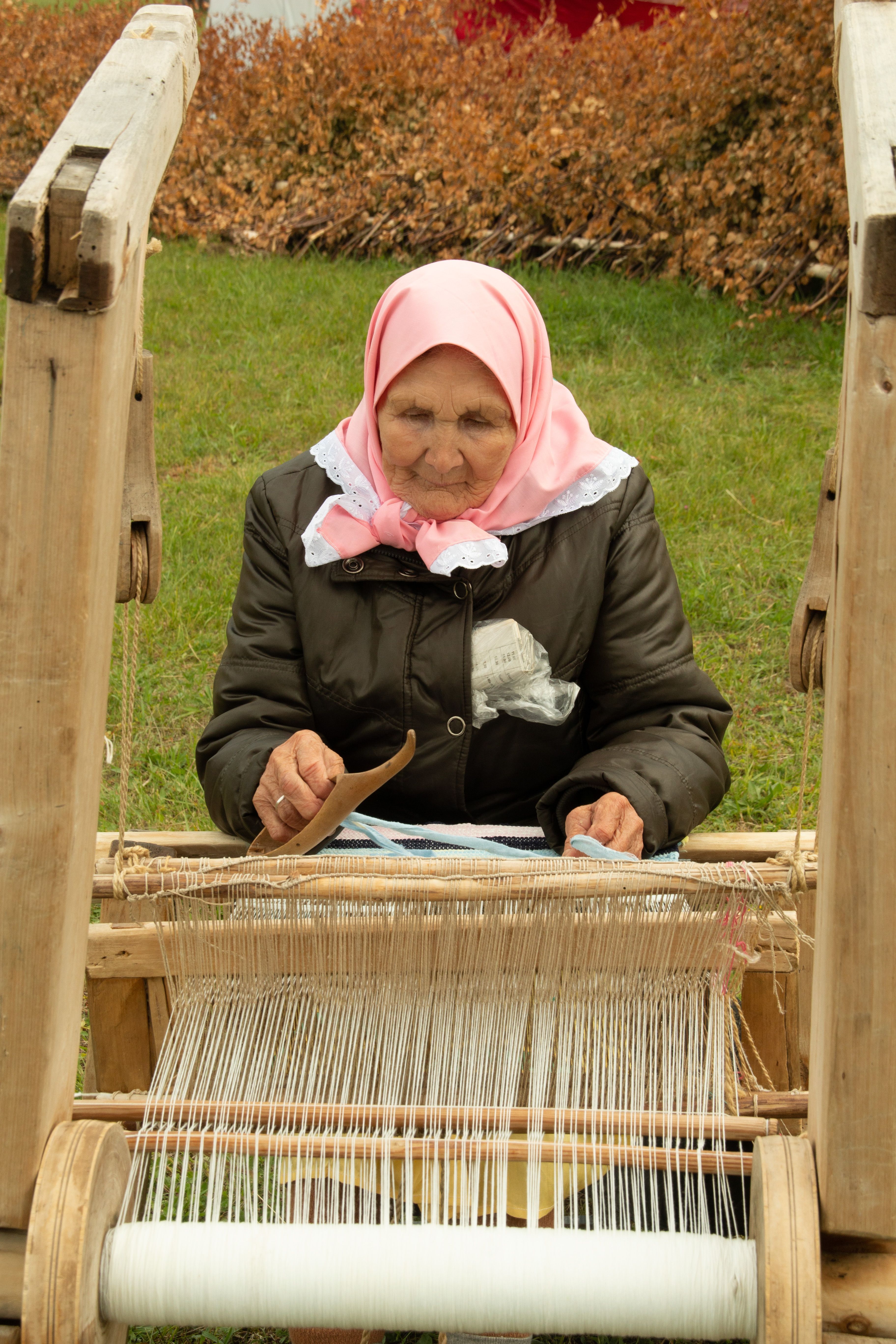 Едва ступив на луг, я с удивлением и радостью увидел ткацкий стан бабушки Зои Воробьевой. За все 12 лет мастерица не пропустила ни одного праздника и стала его талисманом! Вот и в этот раз, несмотря на свои 85 лет, мастерица не усидела дома. Ну что ж, раз на своем месте постукивает ее стан, значит, все хорошо и правильно на земле предков.