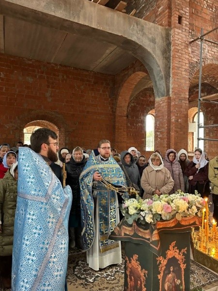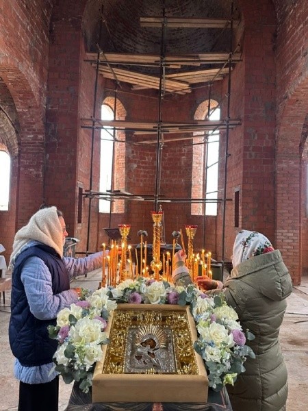 20 октября православные верующие отмечали праздник Псково-Печерской иконы Божией Матери «Умиление». В поселке Юбилейный Медведевского района Марий Эл сейчас идет строительство храма в честь этого образа. И вчера в недостроенном еще пока здании была совершена первая литургия.