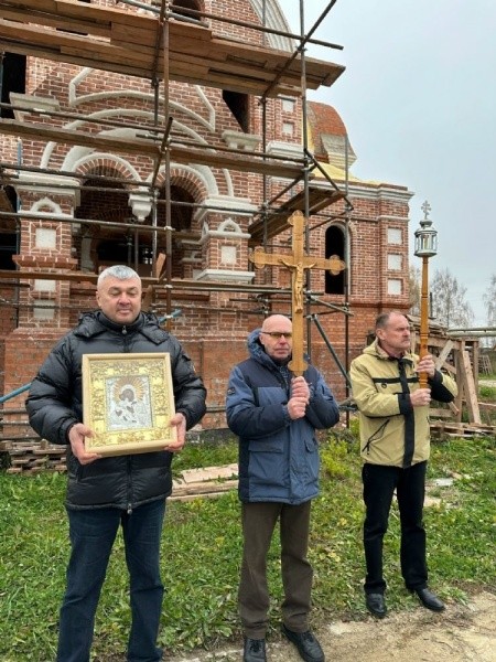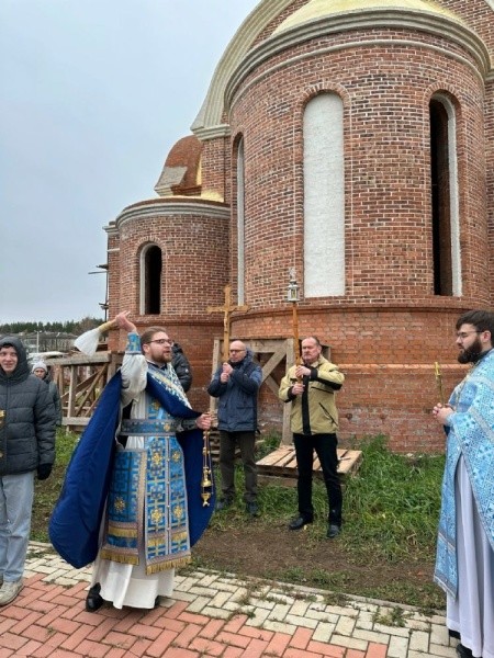 После литургии прошел праздничный крестный ход с кроплением святой водой. Отец Артемий поблагодарил всех за совместную молитву и помощь в строительстве храма.