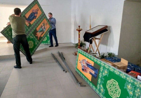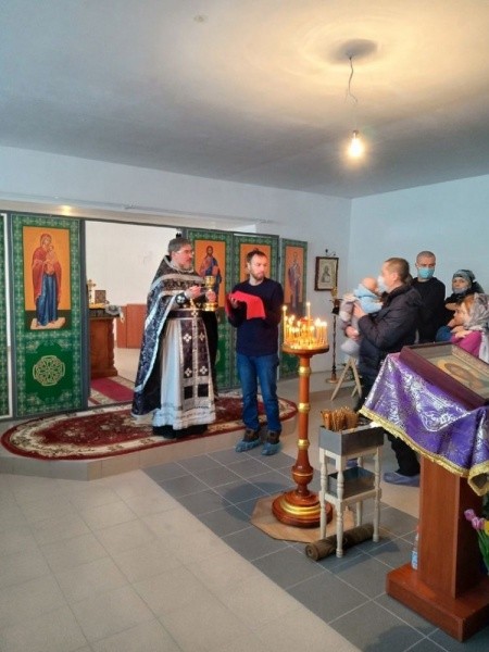 С началом Великого поста из молельного дома в нижний придел нового храма верующие помогли перенести необходимую мебель и утварь, установили временный иконостас, навели чистоту. А 12 марта настоятель храма, благочинный Медведевского церковного округа иерей Александр Козлов совершил первую литургию.