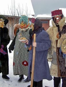 Главных персонажей сопровождает свита: «медведь», солдат, его жена, комические персонажи, домашние животные, актеры изображающие злых духов. Одетые в старые тулупы, шубы, вывернутые мехом наружу, лохматые шапки, в разнообразных масках, весело и шумно заходят они в дом односельчан, поздравляют хозяев с праздником, принимают угощения.