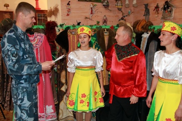 Впрочем, само исполнение песен для «Переступочек», с точки зрения организации процесса, далеко не все необходимое для успеха. Нужен ведь еще и соответствующий антураж. Поскольку репертуар нового трио базируется на стилизованных русских песнях, то и костюмы исполнителей должны быть соответствующие. Благодаря богатому театральному прошлому режимного учреждения (еще совсем недавно здесь находилась женская колония, театр которой признали одним из лучших во всей уголовно-исполнительной системе России) базовые, так сказать, наряды для трио нашлись быстро. А благодаря кружку декоративно-прикладного творчества вскоре появились и новые комплекты сценических костюмов. Артисты украшают их приобретенной на собственные средства бижутерией, на один из сарафанов, например, пришито аж 5000 стразов – любая боярыня позавидует!Вторая проблема, которую одной старательностью не решить, – необходимая для выступлений раскованность, которой, по мнению руководителя, артистам пока не хватает.