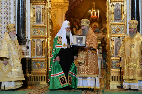 Новый орден Святейший Патриарх Московский и всея Руси Кирилл вручил митрополиту Йошкар-Олинскому и Марийскому Иоанну 1 февраля в день девятой годовщины своей интронизации по окончании Божественной Литургии в Храме Христа Спасителя, рассказали нам в пресс-службе митрополии.