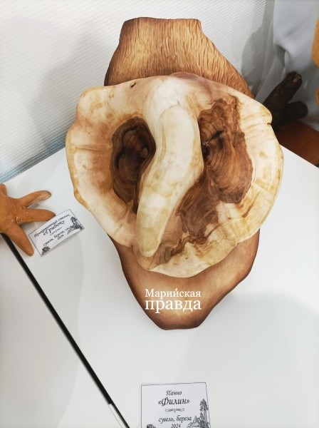 Признаюсь, впервые удалось увидеть такие произведения искусства, в которых иногда фантастические, но чаще узнаваемые образы созданы, в сущности, самой природой. Павел Николаев – один из редких мастеров в республике, который много лет назад буквально влюбился в необычные для творчества материалы: сувель и кап. И если сувель (деформированные и хаотично переплетенные кольца ствола деревьев) встречается в наших лесах частенько да еще в больших объемах, то кап (неразвившиеся почки) – явление довольно редкое.