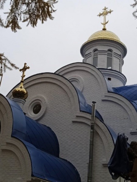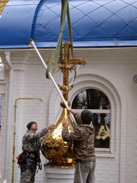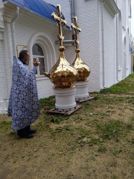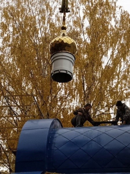 Как сообщается на сайте Йошкар-Олинской и Марийской епархии, настоятель храма иерей Александр Коваль освятил два малых купола и кресты, после этого их установили над алтарем и колокольней.