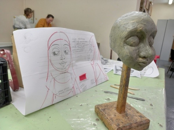 Сейчас в цехах театра идет начальная работа над куклами: лепка формы головы из пластилина и заливка формы гипсом, затем художникам предстоит работа с папье-маше. Премьера спектакля "Калиф-Аист" пройдет летом.