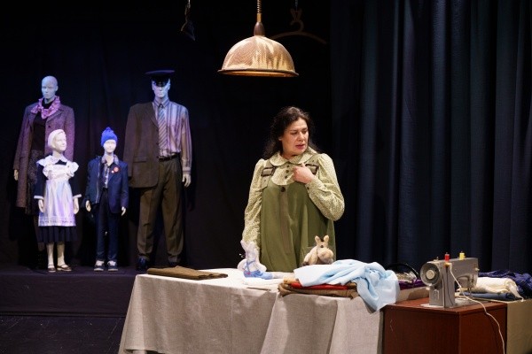 Главная и единственная героиня спектакля - это закройщица театрального пошивочного цеха Марианна, которую почему-то попросили провести экскурсию по театральному «закулисью», но она постоянно отклоняется от заученного текста и рассказывает экскурсантам, то бишь нам, зрителям, грустные истории бабушки, мамы, дочери и свою. Отличный текст, замечательное, лаконичное, но «говорящее» сценическое решение художника Сергея Таныгина, работа художника по костюмам Ларисы Воробьевой и, конечно, великолепная актерская работа Евгении Москаленко сделали спектакль очень трогательным.