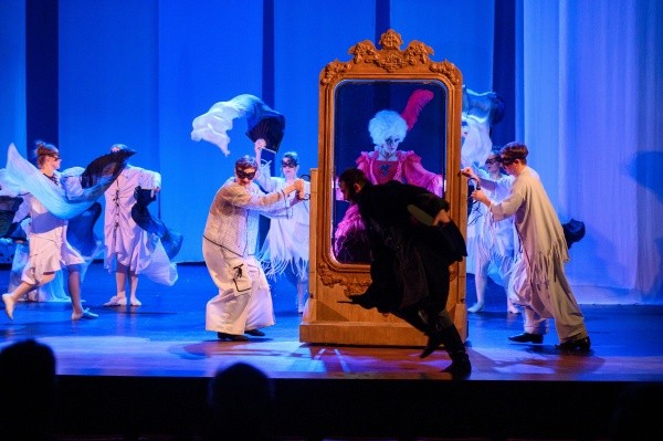 А вот танцы, поставленные хореографом Петром Колесниковым, открыли с другой стороны многих артистов. Особенно Дарью Постникову, Надежду Белобородову, Ярослава Ефремова и Даниила Желудкова. Надо сказать, что вся свита «неприкаянных душ» заслуживает особого внимания публики. У нее, по режиссерскому видению, - важная смысловая задача. «Развидеть» ее возможно, но непросто. Все зависит от желания смотрящего…