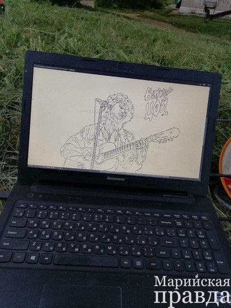 За непосредственное воплощение идеи в жизнь взялся известный в нашей республике художник Илья Белов. Он же предложил несколько эскизов, из которых выбрали один, наиболее понравившийся неравнодушным к творчеству «Кино» жителям Сернура.